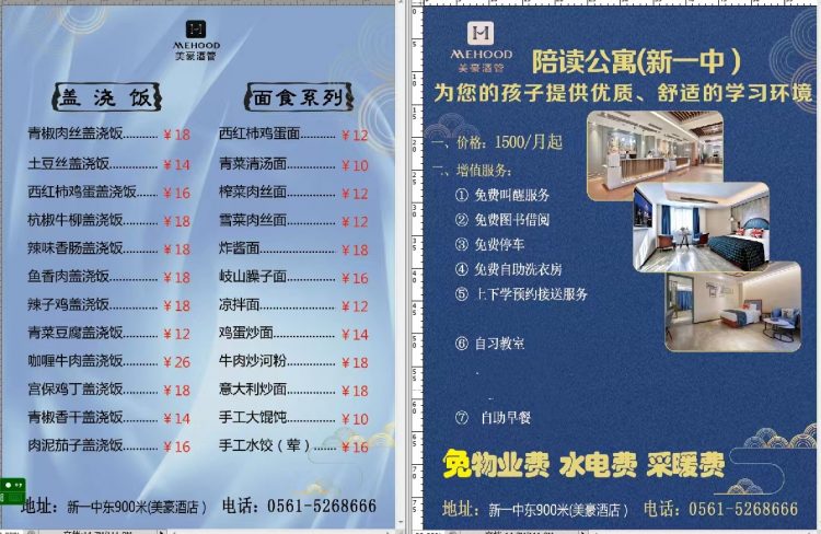 利用美豪酒店地理、環(huán)境優(yōu)勢,結合新一中學生需求,為學生用心打造“三免、七大”增值服務陪讀房方案,既免費提供水電、采暖、物業(yè)、停車服務,還結合學生需求,免費提供打印、叫醒、圖書借閱、自助洗衣等優(yōu)質增值服務;同時為緩解家長送學壓力,酒店提供上下學接送服務、自習教室服務、自助早餐服務等。美豪酒店配備24小時安保巡邏、全天值守客房管家,為學生提供安全、優(yōu)質、舒適的學習及住宿環(huán)境。