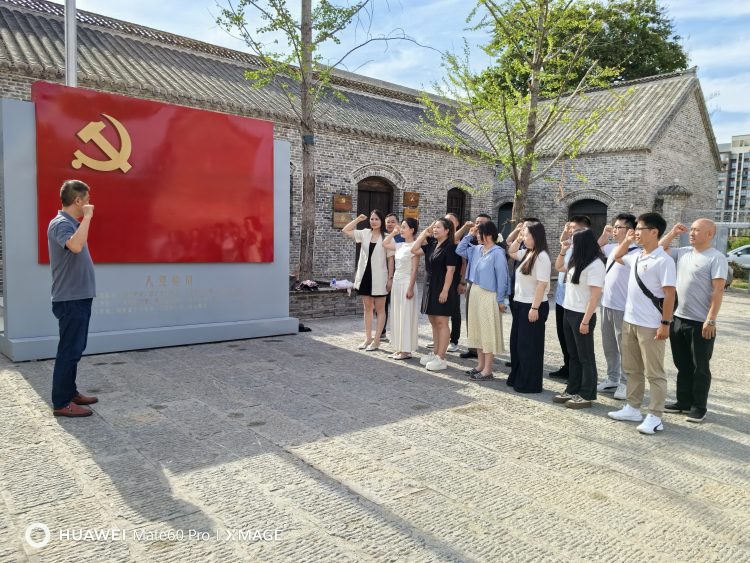 參觀后,黨員們站在鮮紅的黨旗下,高舉拳頭重溫入黨誓詞,鏗鏘恢宏的誓詞,強(qiáng)烈震撼著在場的每一位黨員,一字一句,神圣而豪邁,體現(xiàn)了全體黨員對中國共產(chǎn)黨的無限忠誠。